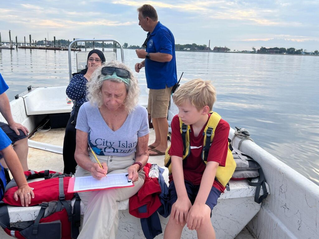City Island Oyster Reef runs on primarily volunteer work, paid interns, and shared time. Most of the work is done by neighbors who get up before dawn to collect water samples, haul shells, and count fish, heading out at 5:30 a.m. — which was initially done by kayak — to circle four miles around the island and hit monitoring stations within three hours of sunrise. My sister Ellie folds her photography into that work, documenting the water‑quality runs and reef prep as part of the monitoring record.
