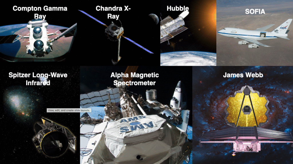 Spitzer infrared telescope and AMS. It’s still working today on the International Space Station.